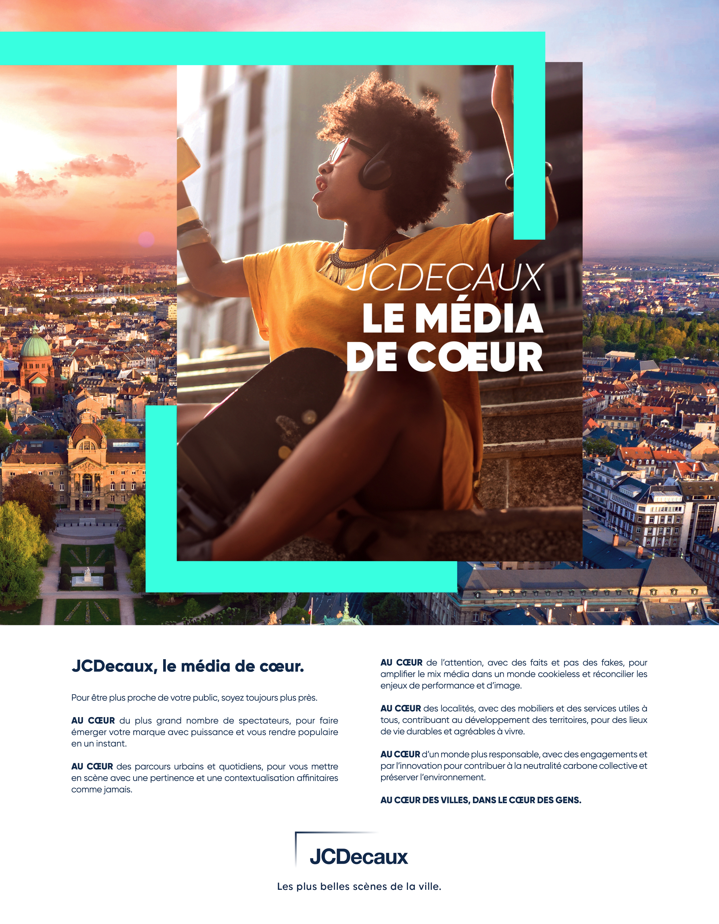 Explorez notre manifeste : le média de cœur de JCDecaux. Soyez au cœur de l'attention, des parcours urbains et quotidiens, et du développement responsable des territoires. Découvrez comment nous mettons votre marque en scène avec puissance, pertinence et engagement.